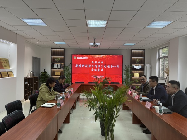 王晓蔚执行院长对新道科技一行表示欢迎,介绍了学院学科建设、专业布局与人才培养成果,希望依托企业技术与产业资源,推动实验室升级、课程改革,提升应用型人才培养质量。